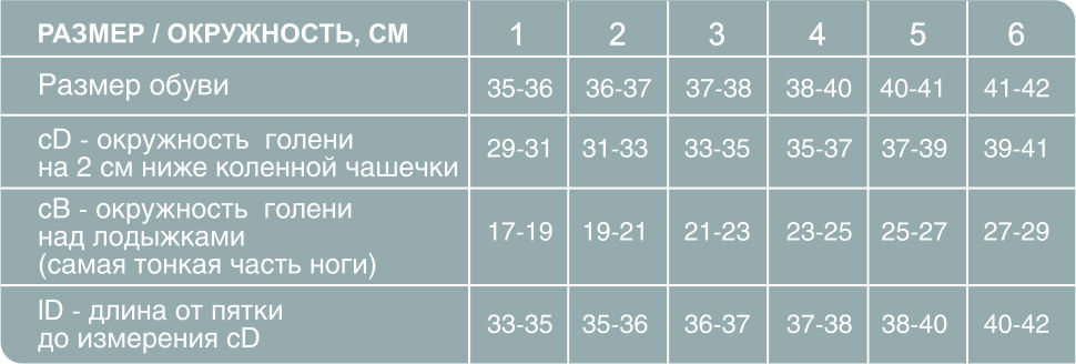 — Точная градуированная схема распределения компрессионного воздействия: в области лодыжек – 100%, верхней трети голени – 70%, бедренной области – 40%;