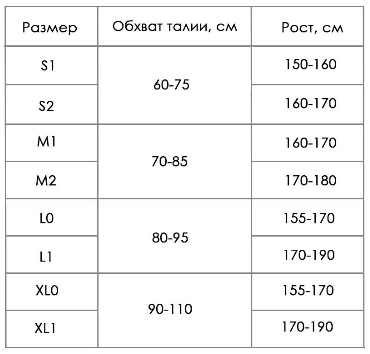 Таблица размеров