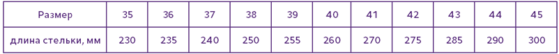 Таблица размеров